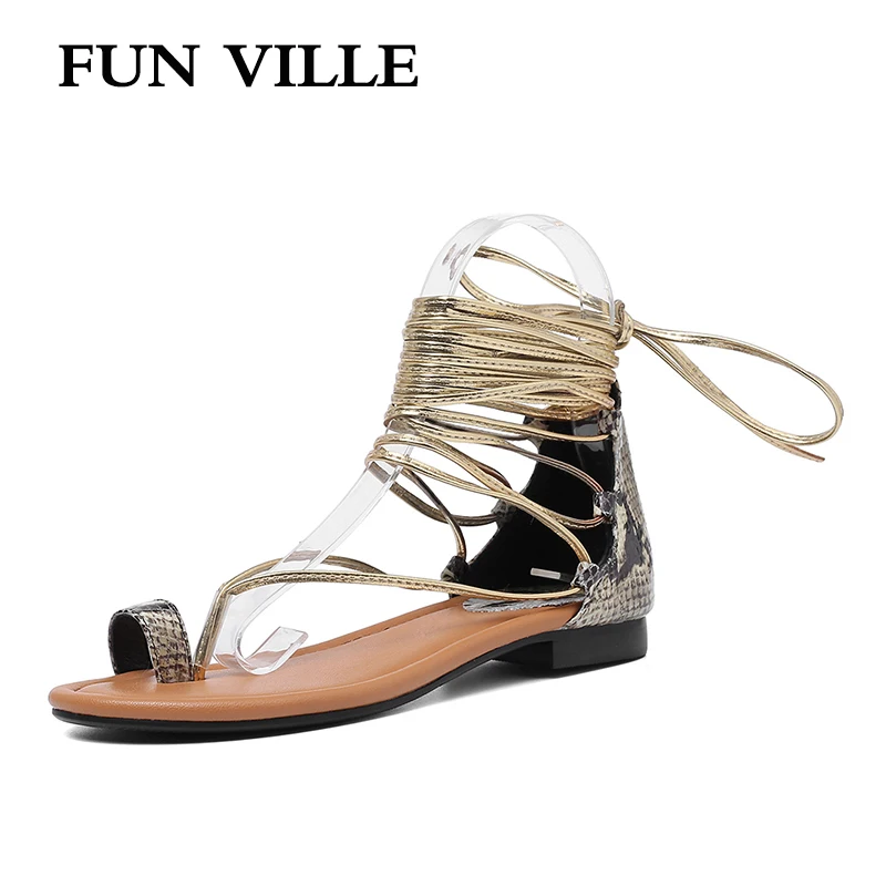 Best Seller FUN VILLE 2019 New Fashion Leopard Summer shoes Women Sandals Genuine Leather Flat shoes women Part