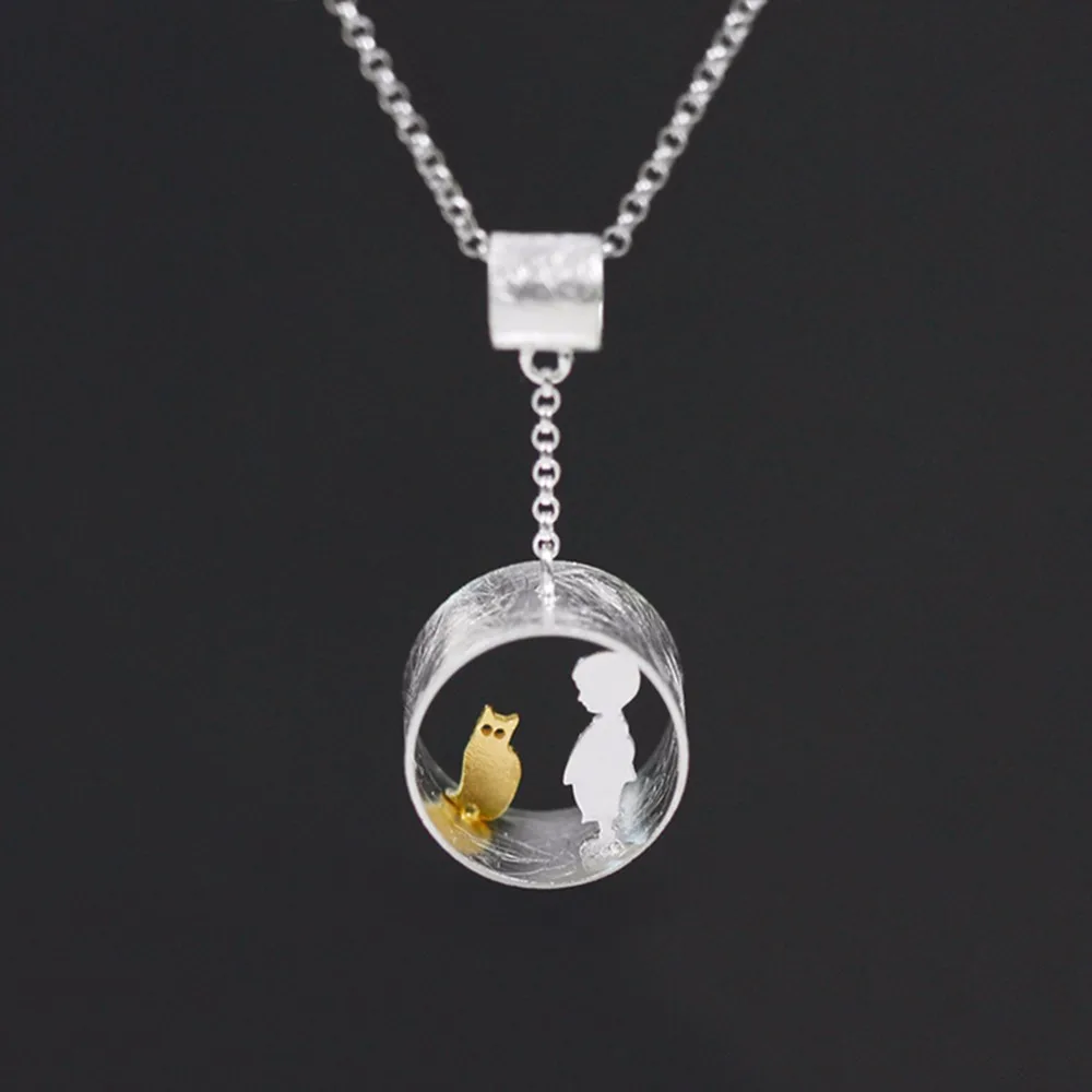 Lotus Fun Real 925 Sterling Silver Necklace Pendants for Women Fine Jewelry Funny Girl/Boy with Cat
