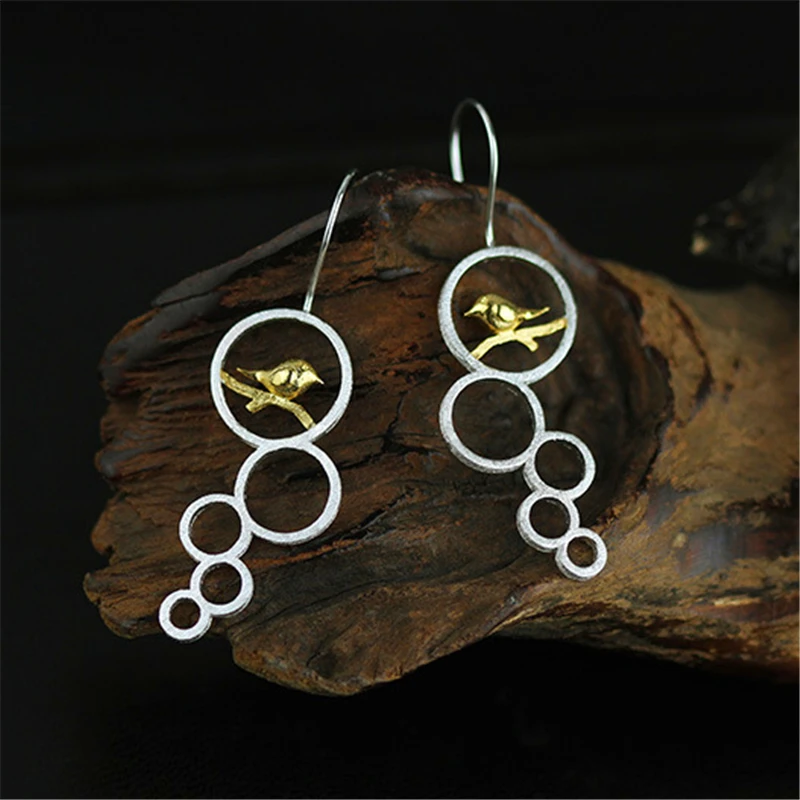 Lotus Fun Real 925 Sterling Silver Natural Creative Handmade Fine Jewelry Elegant Flower Bird Dangl