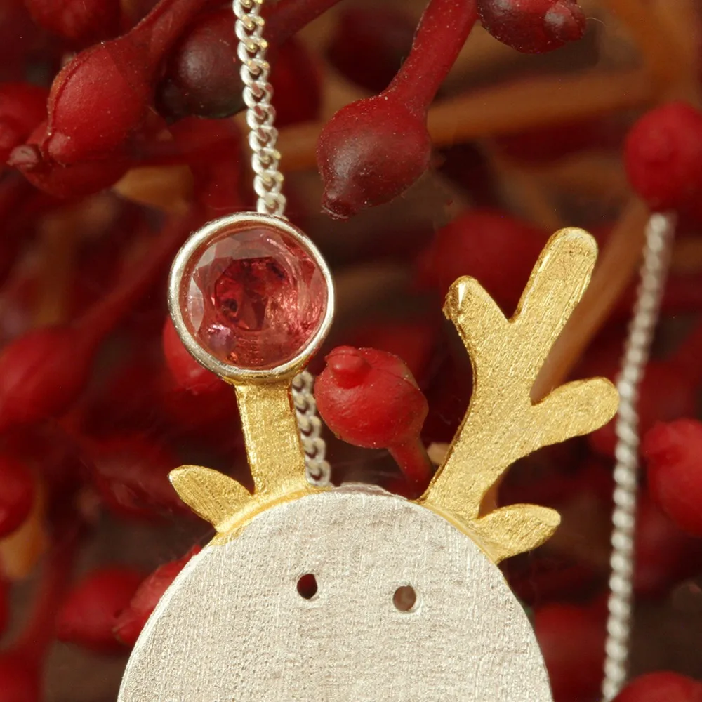 Lotus Fun Real 925 Sterling Silver Natural Handmade Fine Jewelry Christmas Joys Cute Reindeer Penda