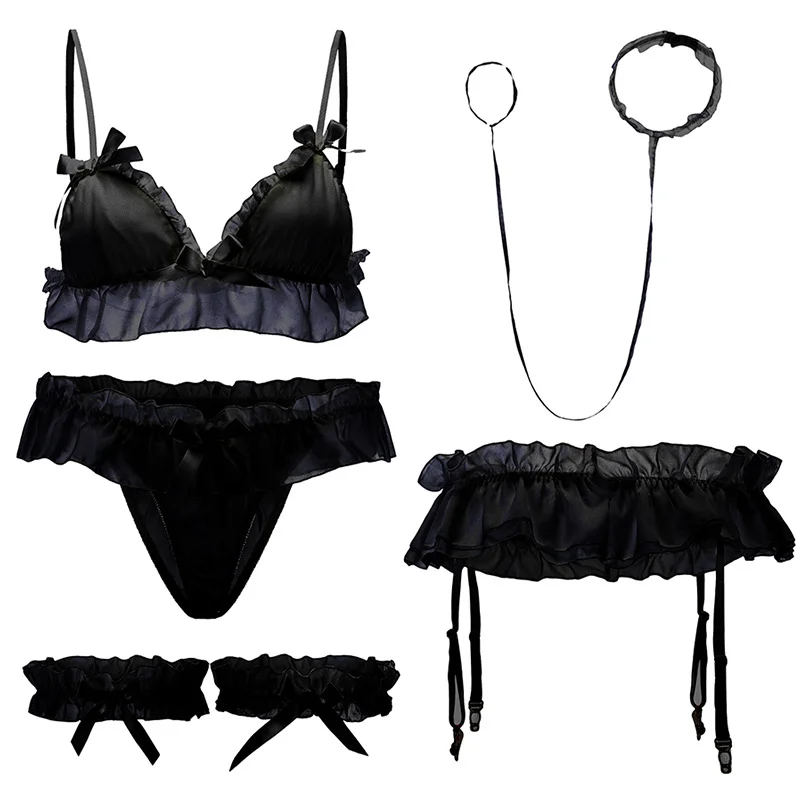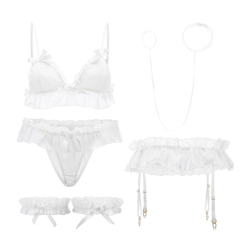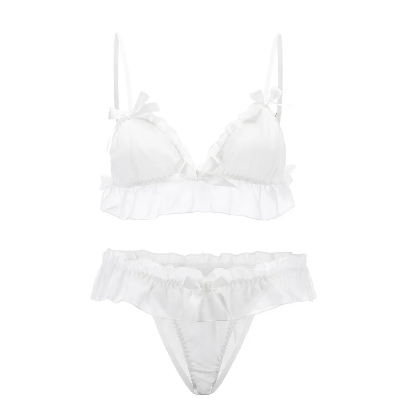 The new chiffon ruffled bra without underwire is sweet and lovely role playing fun three-point suit