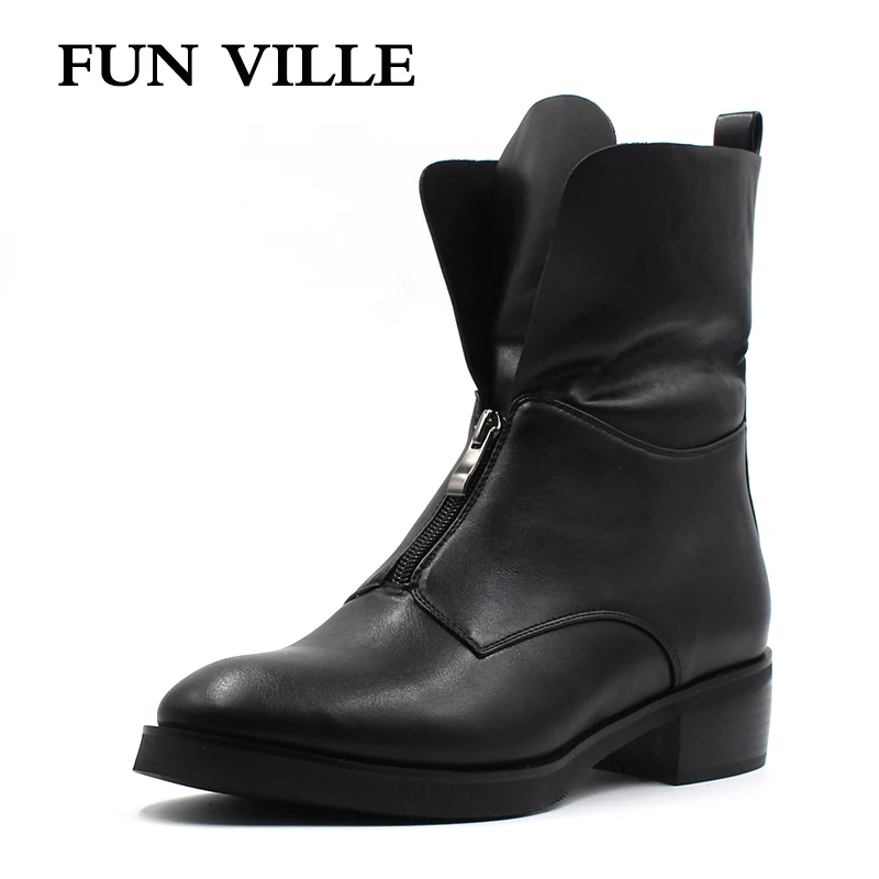 FUN VILLE 2018 New Spring Autumn Women Ankle Boots Hign quality Flat Martin boots black Round Toe Z