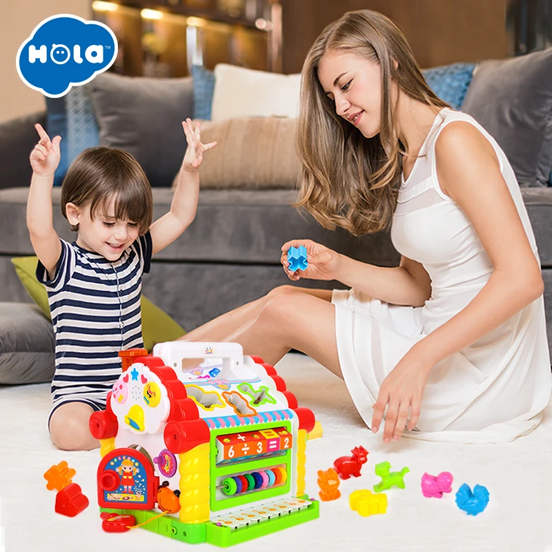 ORIGINAL HOLA 739 Multifunctional Musical Toys Baby Fun House Musical Electronic Geometric Blocks Sorting Le