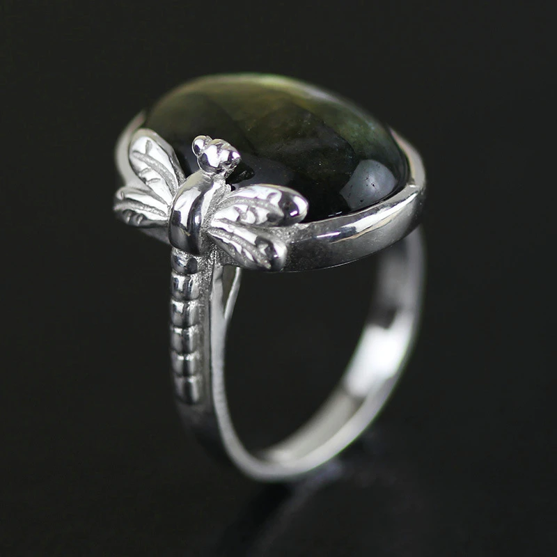 Lotus Fun Real 925 Sterling Silver Natural Labradorite Stone Handmade Original Designer Fine Jewelr